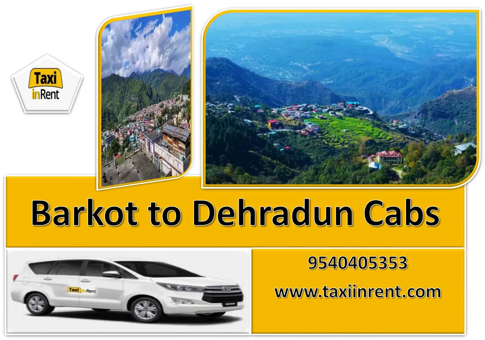 Looking for a Barkot to Dehradun car hire services trip ONE WAY..? For any Quary Call 9540405353 “Taxi in Rent” provides you with this Barkot to Dehradun Car Rental Service at any time. You can also avail of taxi services from Taxi Service Barkot to Dehradun. We provide you with great facilities and timely services. You can book a car from Barkot to Dehradun in the easiest way by visiting our website www.taxiinrent.com. If you are planning to book a Barkot to Dehradun cab you should book with us because we are committed to, a timely, quality, and reliable cab service from Barkot to Dehradun. www.taxiinrent.com For any Quary Call 9540405353, Hotel, Airport, railway station, taxi service bus stand in Barkot, Airport car hire, Bus stand taxi service, Railway station, one-way Taxi from Barkot to Dehradun, one-way Cab from Barkot to Dehradun, one way Car from Barkot to Dehradun, Barkot to Dehradun one way by car hire, Barkot to Dehradun one way by cab hire, Barkot to Dehradun one way by taxi hire
