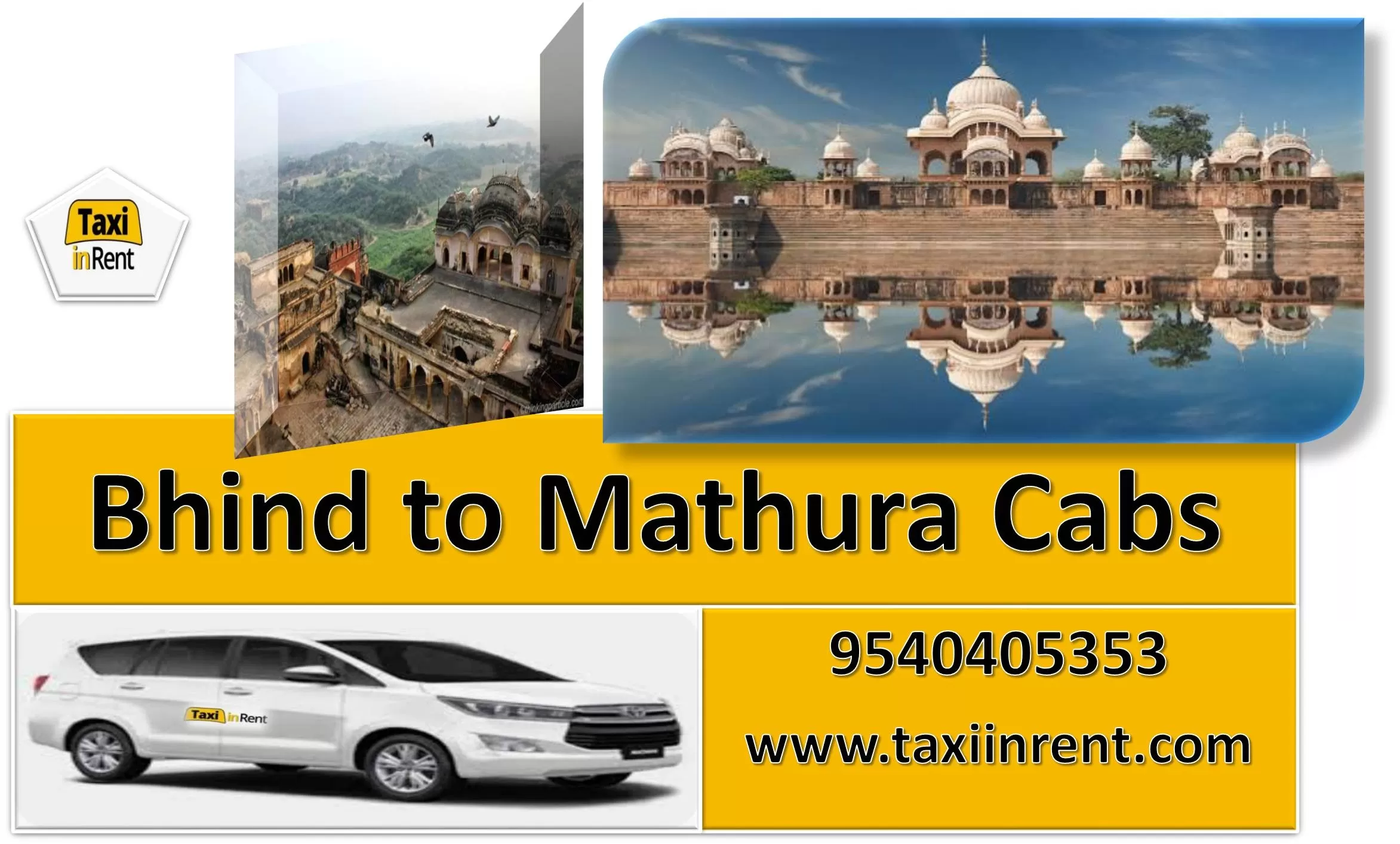 Looking for a Bhind to Mathura car hire services trip ONE WAY..? For any Quary Call 9540405353 “Taxi in Rent” provides you with this Bhind to Mathura Car Rental Service at any time. You can also avail of taxi services from Taxi Service Bhind to Mathura. We provide you with great facilities and timely services. You can book a car from Bhind to Mathura in the easiest way by visiting our website www.taxiinrent.com. If you are planning to book a Bhind to Mathura cab you should book with us because we are committed to, a timely, quality, and reliable cab service from Bhind to Mathura. www.taxiinrent.com For any Quary Call 9540405353, Hotel, Airport, railway station, taxi service bus stand in Bhind, Airport car hire, Bus stand taxi service, Railway station, one-way Taxi from Bhind to Mathura, one-way Cab from Bhind to Mathura, one way Car from Bhind to Mathura, Bhind to Mathura one way by car hire, Bhind to Mathura one way by cab hire, Bhind to Mathura one way by taxi hire