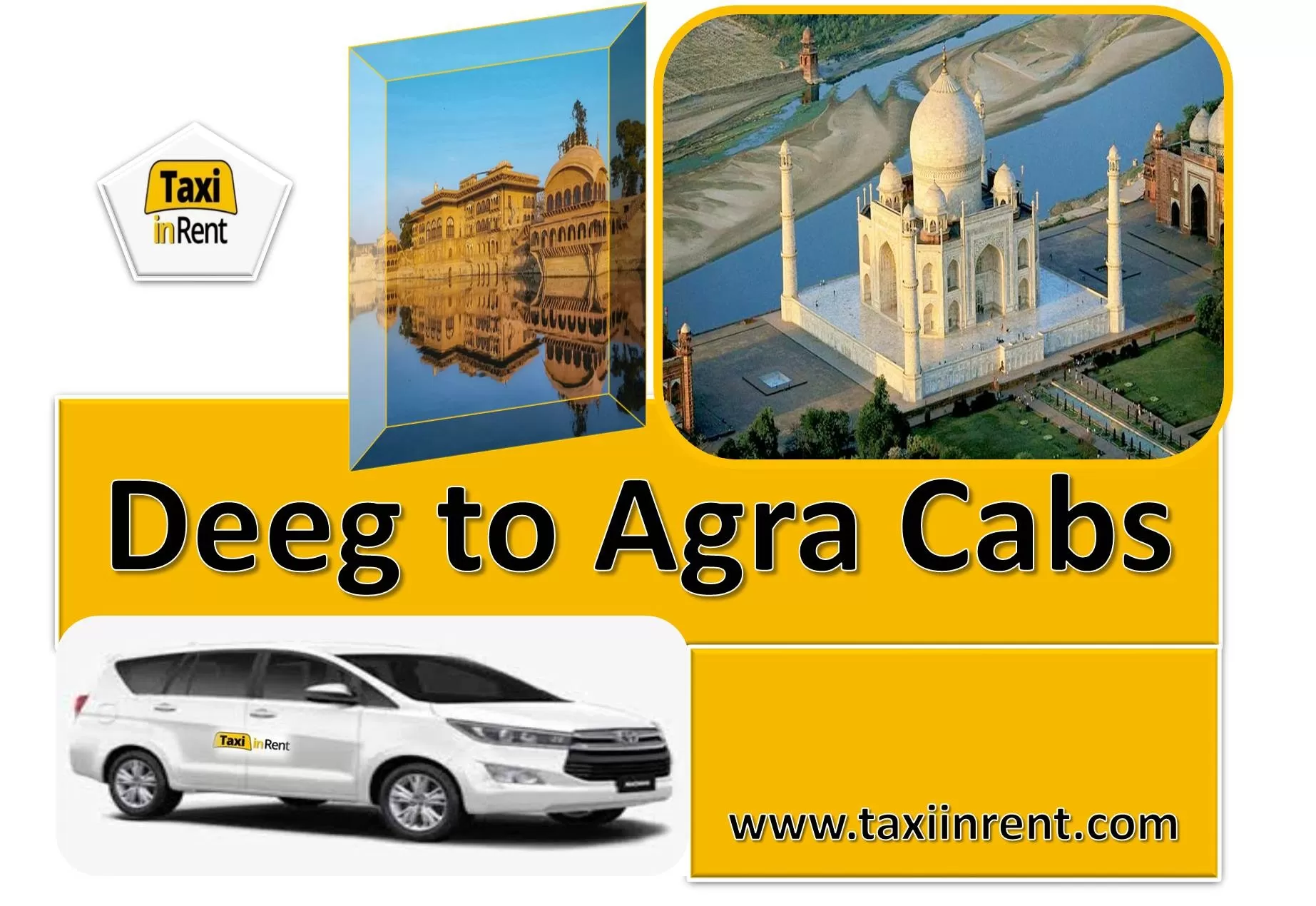 Answer. The best taxi and cab service for the Deeg to Agra route is TaxiInRent. We offer Deeg to Agra airport cabs at the cheapest fare.