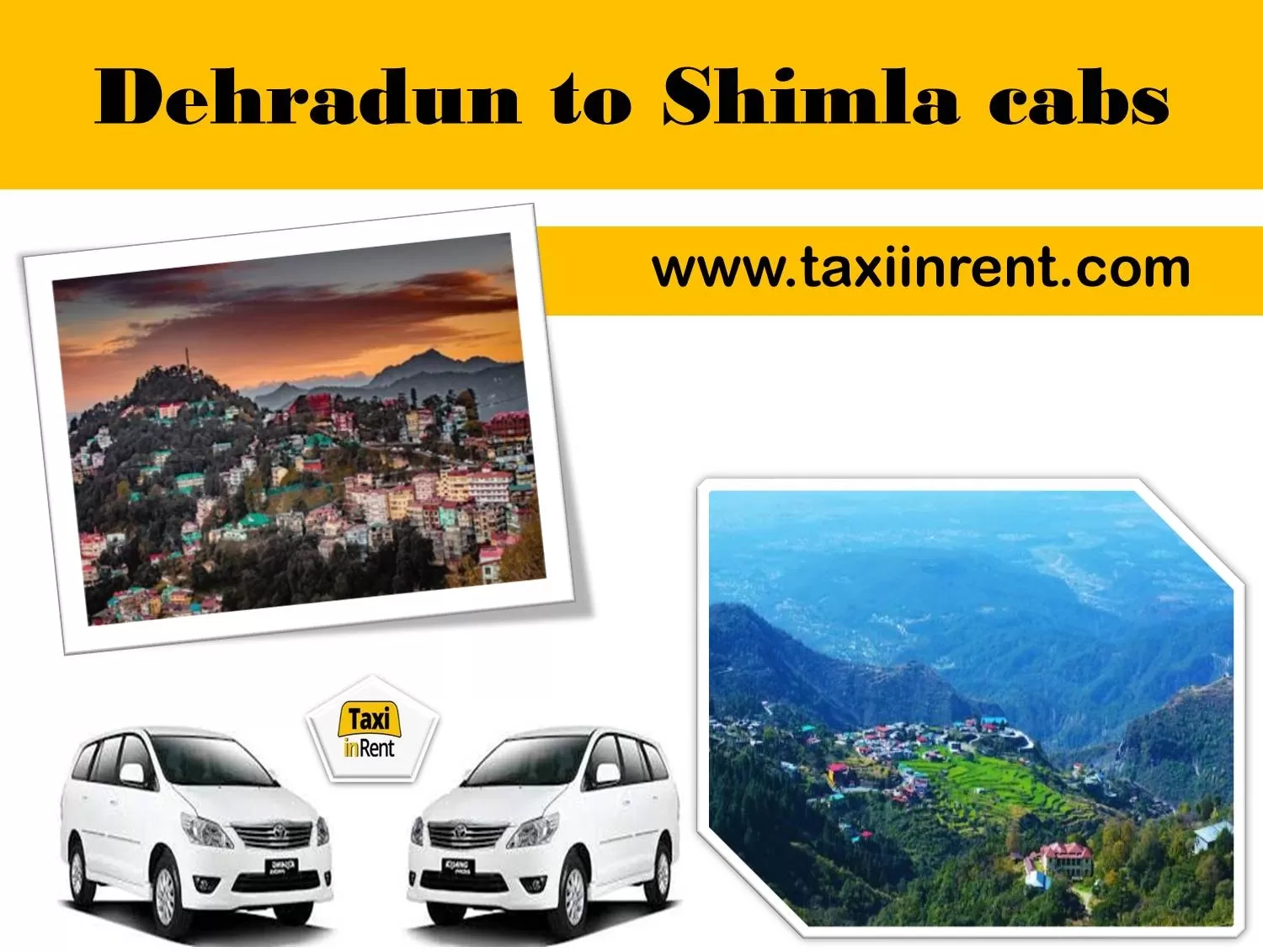 Answer. The best taxi and cab service for the Dehradun to Shimla route is TaxiInRent. We offer Dehradun to Shimla airport cabs at the cheapest fare.
